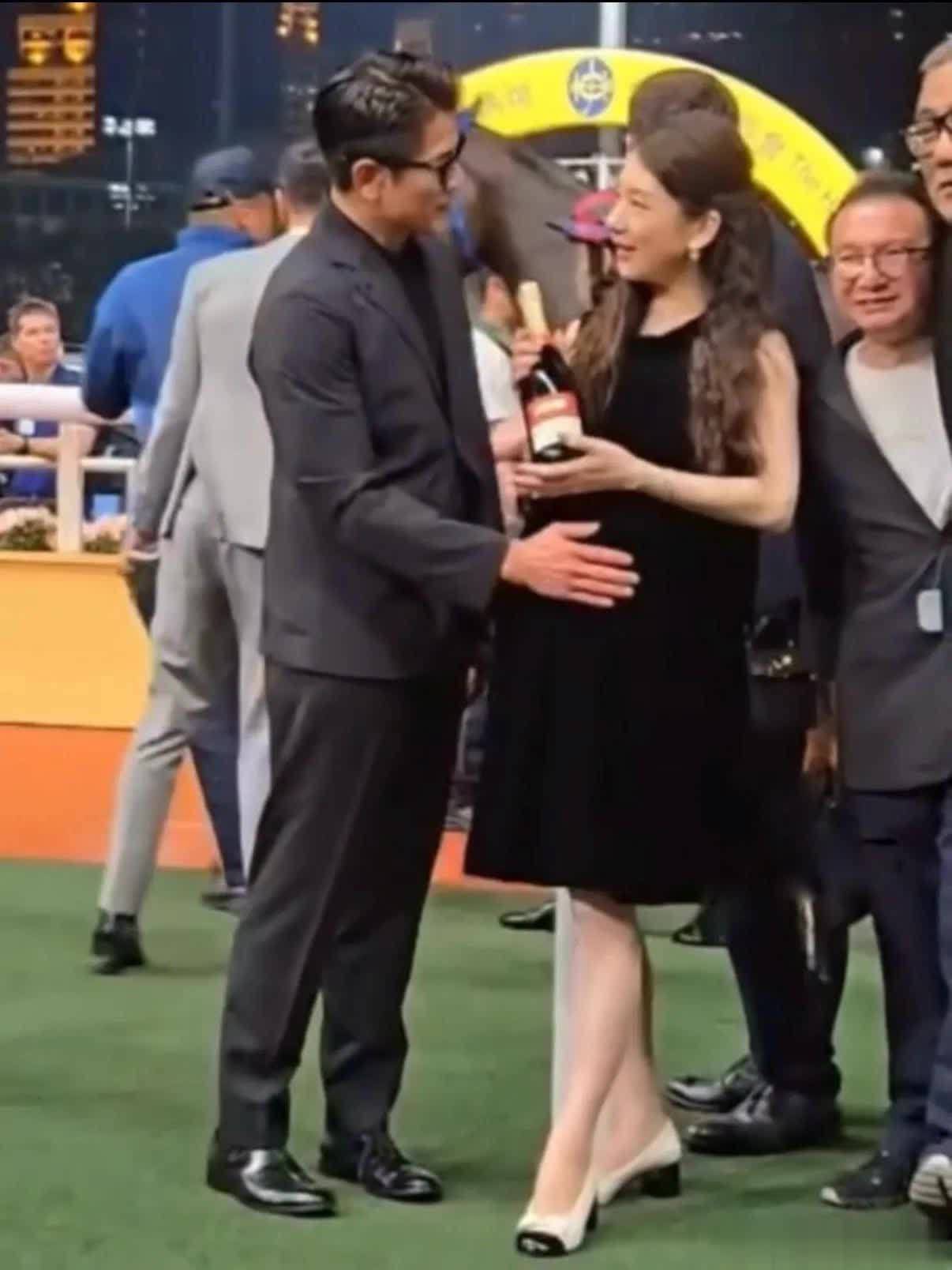 最后,郭富城方媛一起出席拉头马仪式,郭富城还把香槟递给方媛拿着,并轻抚老婆孕肚,满脸宠溺看着老婆。夫妇二人互动恩爱甜蜜。