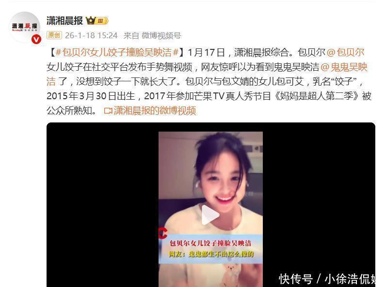 据1月18日报道,包贝尔10岁的女儿饺子一段手势舞视频,直接让网友集体“脸盲”。视频里的小姑娘笑容甜美、表情灵动,结果评论区炸了锅:“我还以为刷到鬼鬼吴映洁了!”“这确定不是吴映洁小时候?”一场关于“跨代际撞脸”的热议,就这么猝不及防地冲上了热搜。